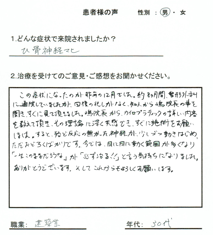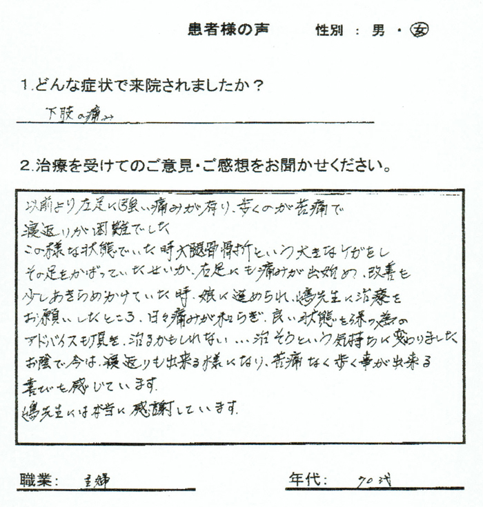 その後、嶋先生のいろいろな施術、手技で症状が軽減されています。